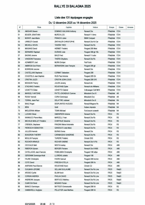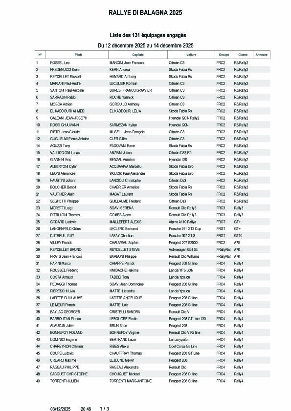 A la quantité s’ajoute la qualité, puisque plusieurs pilotes pourront prétendre à la victoire. Vainqueur de la Giraglia cette année, le champion de France 2024 Léo Rossel se présentera pour la troisième fois au départ de la Balagne. Pablo Sarrazin, également sur une C3 Rally2, voudra conclure de la meilleure des manières sa très grosse saison, qui l’aura vu évoluer en championnat de France asphalte et terre, ainsi qu’en WRC2. Second l’année dernière, Mickael Reydellet voudra confirmer. Face à ce trio de continentaux pouvant prétendre au podium, plusieurs insulaires auront de solides arguments pour rivaliser. Nous pouvons ainsi citer deux doubles vainqueurs, avec Kevin Fredenucci (2021 et 2024), et Paul-André Mariani (2022 et 2023). Citons également Paul-Antoine Santoni, vainqueur au Paese Aiaccinu et à Eccica cette année. Après son retour gagnant au Mare è Machja, Pierre-Antoine Guglielmi sera lui aussi à surveiller. Jean-Jo Galeani, deuxième lors du dernier Mare è Machja sera également de la fête. Ghjuvà Rossi, récent vainqueur du WRC3 lors du rallye du Japon, s’alignera pour la première fois sur une Rally2, tout comme Jean-Claude Pietri. Autant dire qu’il y aura de la grosse attaque, et que les places seront disputées dans la catégorie.