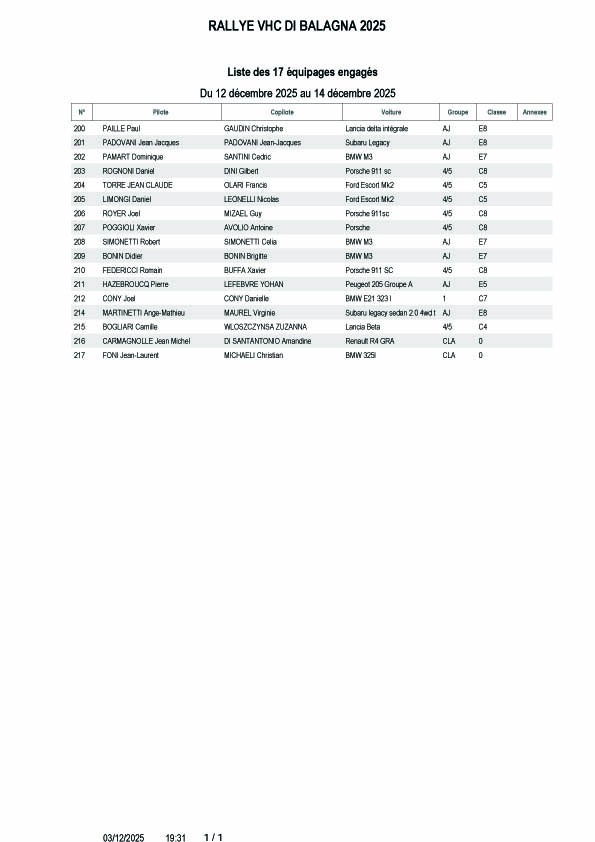 Comme depuis une quinzaine d’année maintenant, le rallye de Balagne clôturera la saison des rallyes insulaires avant la coupure hivernale !