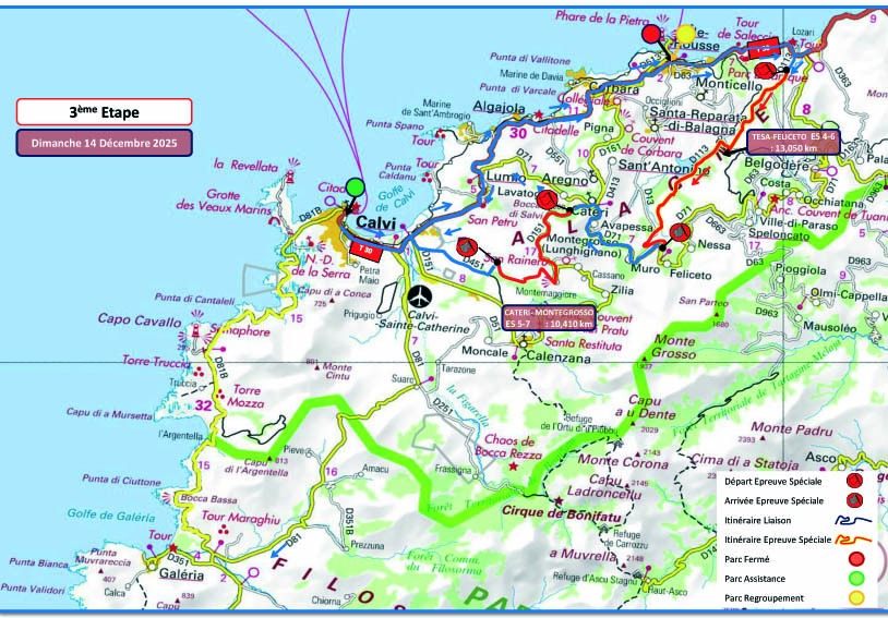 Le dimanche, deux spéciales seront à parcourir à deux reprises, avec la spéciale du barrage entre Tesa et Feliceto. Le second chrono se fera entre Cateri et Montegrosso.